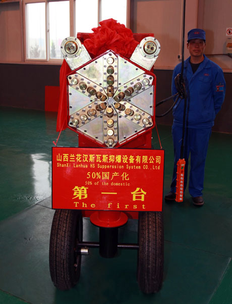 由南非研发生产的煤矿瓦斯抑爆系统是当今世界最先进的煤矿瓦斯抑爆设备,这一系统在井下通过灵敏的光学探头,捕捉微弱的瓦斯爆炸信号,并在毫秒内作出反应,排出特制的阻燃抑爆粉尘形成抑爆屏障,阻断瓦斯爆炸反应链同时灭火降压降温,从而有效避免瓦斯事故的发生。该系统已在澳洲、美洲、欧洲得到大量应用。2006年,兰花集团从南非引进了瓦斯抑爆技术,并成立了中南合资企业———山西兰花汉斯瓦斯抑爆设备有限公司,运用南非技术生产煤矿瓦斯抑爆系统。煤矿瓦斯抑爆项目也被列为科技部国际合作项目、市重点转型项目。2009年12月山西兰花汉斯瓦斯抑爆设备有限公司生产的产品取得国家矿用产品安全标志证书,并在唐安、大宁煤矿井下安装和使用。(太行日报)
