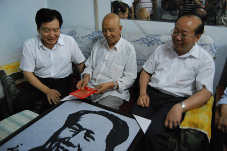 本网讯 6月30日上午,市国资委主任、党委书记闫培烈,集团公司党委副书记、工会主席殷明等的陪同下,看望慰问了公司两名建国前入党的老党员李政权和唐定华,给他们送去了党组织和企业的关怀和温暖。图为闫培烈、殷明在老党员李政权的家中促膝相谈,并送上慰问金、慰问品和鲜花。(魏松松)
