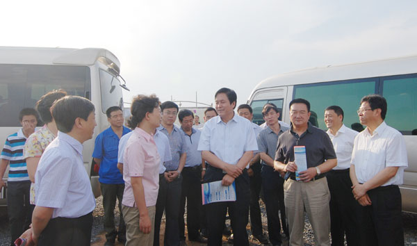 本网讯 6月14日,省国土资源厅厅长李建功在市委书记张九萍、市委副书记冯建平等陪同下,深入已内酰胺项目现场就解决项目用地需求进行调研,详细了解了项目建设过程中存在的问题和困难,询问产品工艺、市场营销等方面的情况。股份公司董事长郝跃洲陪同调研。