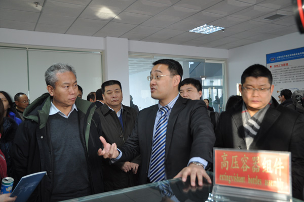 本网讯 1月3日,上海浦东新区高新企业高层人员来我市考察期间,专门深入兰花汉斯瓦斯抑爆公司参观访问。市经委主任张新光、集团公司党委书记田锡军及集团董事会秘书王军、瓦斯抑爆负责人等陪同参观,并与各位企业家就项目合作进行了交流对接。
