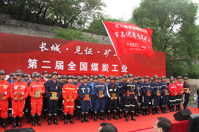 5月27日,“长城见证百名矿工暨授牌仪式”在长城举行。百名来自全国煤炭开采一线的青年矿工,身着工服,头戴矿帽,汇聚在长城脚下,发出了响彻云霄的倡言,盛大的授牌仪式同时举行。5月28日清晨,百名优秀青年矿工在天安门广场观看了升旗仪式,并向国旗宣誓。随后,在人民大会堂新闻发布中心举行了“聚集青年矿工 展现青春风采 第二届全国煤炭工业百名优秀青年矿工发布仪式”。中国煤炭工业协会党委副书记孙之鹏在发布会上表示,这一百名优秀青年矿工,是550万矿工的骄傲,在他们身上集中体现着煤炭工人的历史传统和伟大精神。