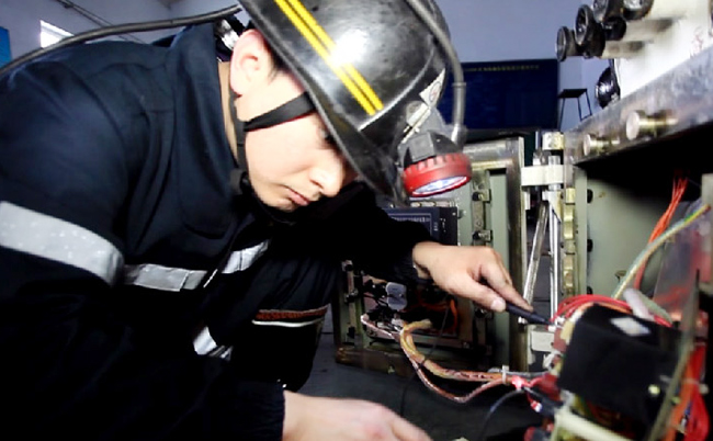 东峰矿综放队机电副队长张利强在现场维修机电设备