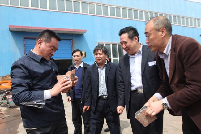 郝跃洲在大阳分公司煤矸石砖厂查看产品质量
