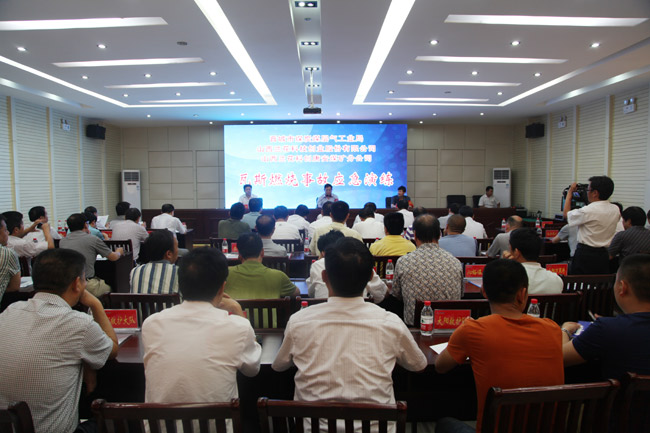 本网讯 6月28日,按市煤炭煤层气工业局要求,唐安煤矿组织开展了煤矿瓦斯燃烧应急救援演练。演练采用实景演示、视频直播、会场观看、事后点评相结合的方式进行。市煤炭、煤层气工业局组织各县(市)煤炭工业局、市直煤炭企业、部分救护队观看了实景直播,股份公司陈胜利、副总吕吉峰、甄恩赐、和根虎等领导参加了演练。