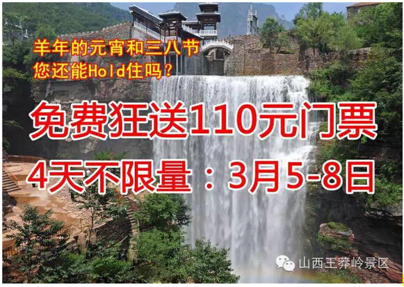 元宵节 三八节,王莽岭 免门票 不限量!