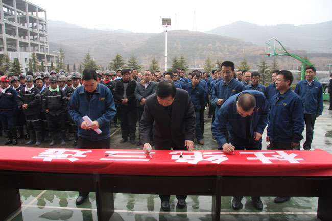 股份总理陈胜利参加了玉溪煤矿安全警示教育活动。他与上百名建设者一起庄严宣誓,并在安全条幅上郑重签名。