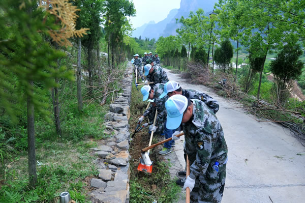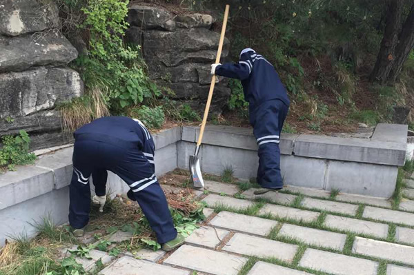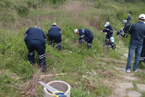 王莽岭景区综合整改整治“千人百日攻坚战”打响后,公司上下通力合作,干部职工戮力同心,咬住目标不放松,全力加快工作步伐。参与景区整治工作的东峰、莒山、望云、唐安、伯方、大阳等六矿500余名干部职工,任劳任怨,不讲条件,在不影响游客旅游观光的前提下,进行景区杂草、枯树、垃圾等环境清理工作,高标准严要求完成任务。图为景区环境整治现场。 (薛强)