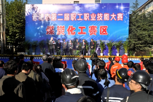 本网讯 10月15日,晋城市第二届职工职业技能大赛兰花赛区煤炭化工行业决赛在伯方煤矿举行。大赛由晋城市总工会、晋城市人力资源和社会保障局联合举办。市人大常委会副主任、市总工会主席张满祥、市总工会副主席殷杰云、股份公司总经理陈胜利、集团党委副书记、工会主席殷明等领导观摩比赛。