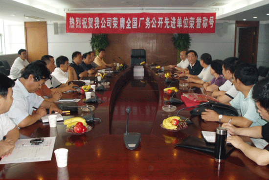 7月24日上午,在公司十四楼会议室召开了“庆祝公司荣膺全国厂务公开先进单位荣誉称号”大会,纪检委书记殷明主持了本次会议.