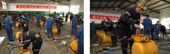 北岩矿积极创建学习型企业,以培养“四有”员工队伍为目标,全员学习坚持不懈,打造了一支业务精,技术强,肯钻研、创新能力强的高级技术工人队伍。该矿通过岗位练兵、技术比武等手段,加大了对现有员工的培养,极大地提高了广大员工的技能水平。图为在东峰煤矿现场举办的井下电钳工技能比武现场。