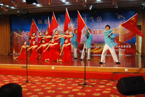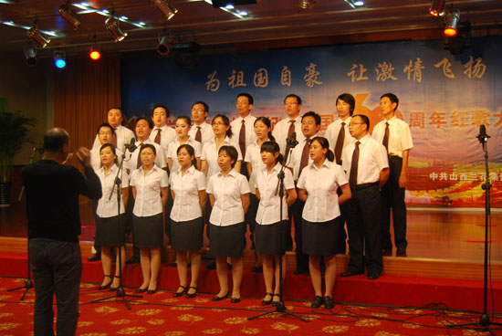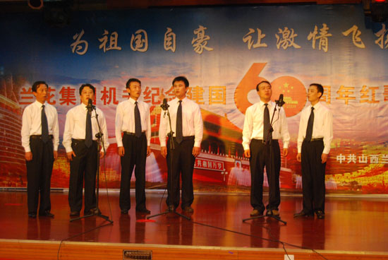 本网讯 9月29日下午,公司机关党总支组织举办了纪念建国60周年红歌卡拉OK大赛,公司领导和机关全体员工,共同唱响了对党、对祖国、对兰花的无比忠诚和热爱之情。本次比赛共有15支代表队进入决赛,整场比赛气氛热烈、高潮迭起,充分展示了兰花机关员工朝气蓬勃、健康向上的精神风貌,向祖国60年华诞献上了一份真挚的祝福。