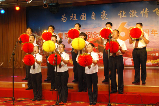 在中华人民共和国成立60年之际,大阳分公司举办了一系列庆祝活动,表达了全矿2000余名干部职工,欢庆祖国60年华诞的喜悦心情。通过在矿区张贴标语、悬挂条幅、制作版面,展现了我国60年取得的瞩目成就和矿山发生的巨大变化,通过举办“唱响红色旋律,共谱和谐乐章”红歌演唱会,抒发了全体员工爱国爱企的精神风貌。