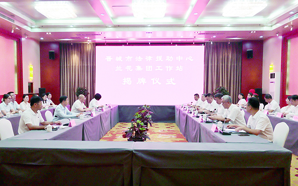 市司法局党组书记、局长傅彦虎,集团公司党委副书记、副董事长、总经理刘守强致辞。市司法局党组成员、副局长李建民宣读成立“晋城市法律援助中心兰花集团工作站”通知。集团公司领导柏凌装主持揭牌仪式。集团公司党委委员、股份公司董事长、总经理刘海山介绍兰花集团基本情况。集团(股份)公司总法律顾问杨海兵汇报市法律援助中心兰花集团工作站筹备情况。市法律援助中心主任庞素梅到会指导,集团公司副总政工师、党委办公室主任(机关党委书记)、党委组织部副部长句国冠等参加揭牌仪式,并集中观看了兰花集团普法宣传小视频。