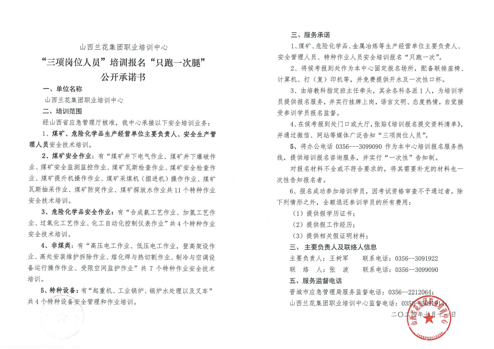 三项岗位人员”培训报名“只跑一次腿”公开承诺书